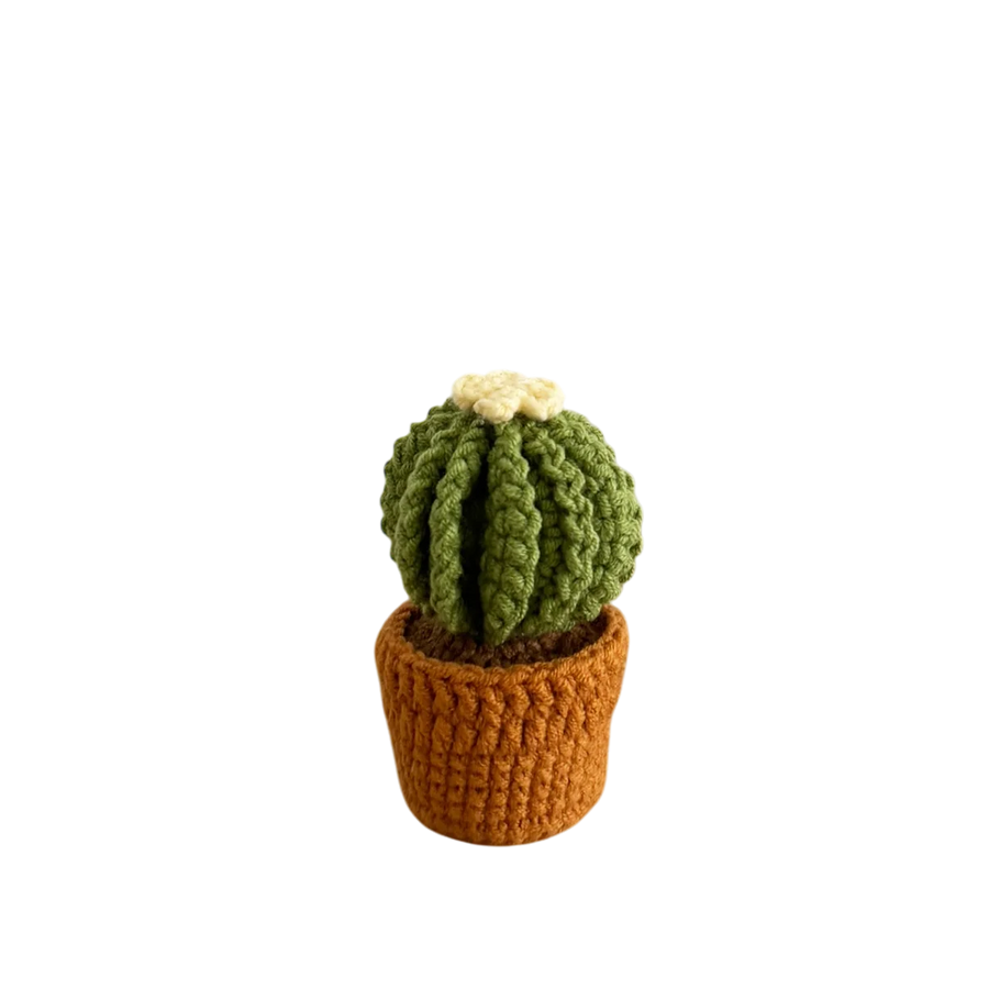 This adorable Yellow Cactus Pot Plant is a ray of sunshine with a charming cream blossom. Its textured shape and earthy tones make it a cheerful addition to your plant collection.